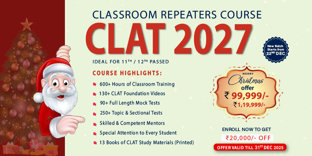 | 22-Dec-2025 | CLAT 2027 REPEATERS | Mon-Fri(10:00 AM - 01:00 PM) | 32/40 (*Fast-Filling) | MONDAY TO FRIDAY | REGISTER NOW |