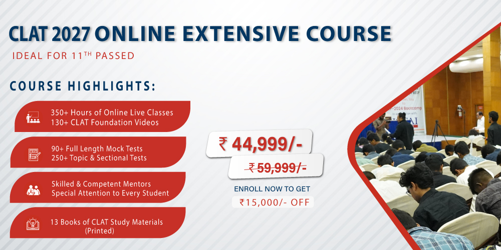 CLAT Online Extensive Course: Extensive Online Program offers students a thorough and exhaustive preparation for CLAT and other major law exams. We offer aspirants not only online training and extensive study materials, but also comprehensive classroom, online, and take-home exercises and tests..